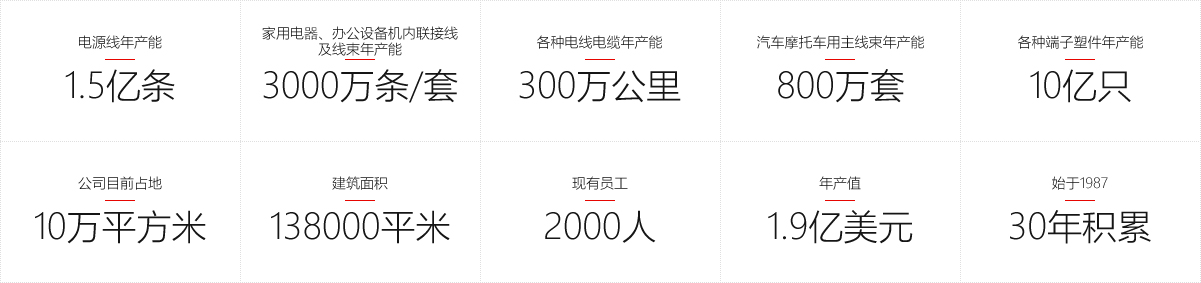 it has been developed to a medium-sized enterprise which specializing in power supply cords, lead wires for home appliance, cables and wires, wiring harness for automobile and motorcycles, terminals and housings.